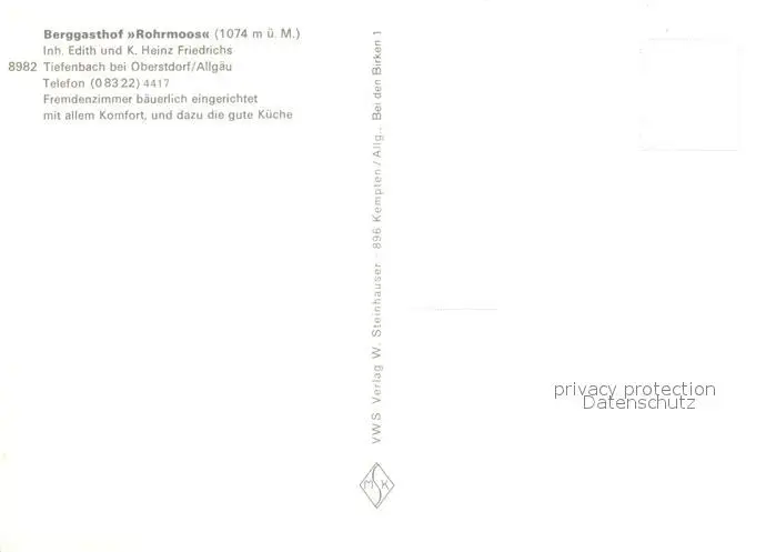 Tiefenbach_Oberstdorf Berggasthof Rohrmoos Gastraum Tiefenbach_Oberstdorf postalisch nicht gelaufen nach 1965 Erhaltung siehe scans [FriedD77] Frierer
