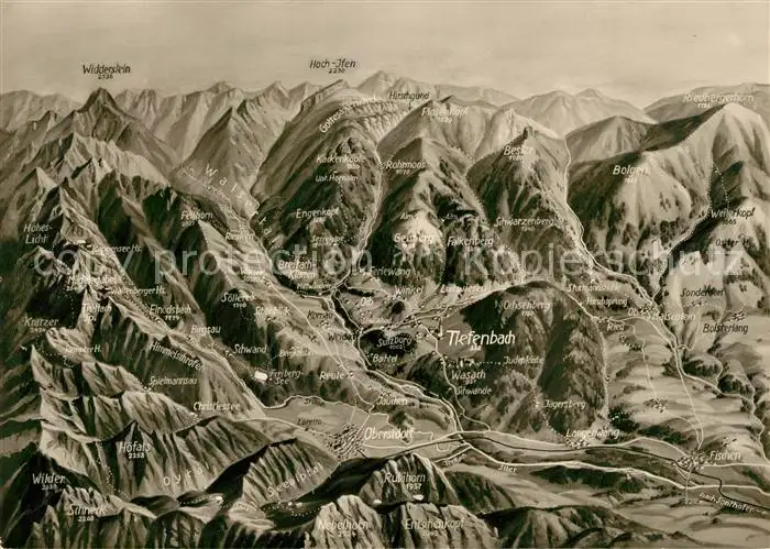 Tiefenbach_Oberstdorf Panoramakarte Tiefenbach_Oberstdorf postalisch nicht gelaufen 1921-1965 Erhaltung siehe scans [LiesaD40] LiesID40