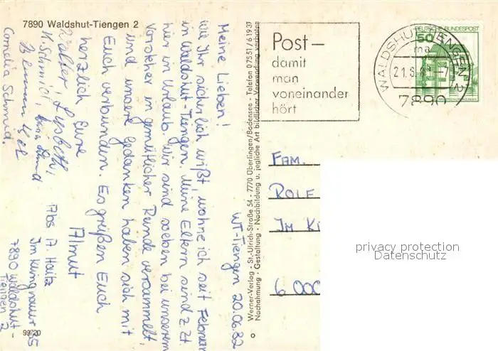 Tiengen_Waldshut Brunnen Aussichtsturm Stadtansichten Tiengen Waldshut postalisch gelaufen 1982 Erhaltung siehe scans [KathaD81] Kathoren