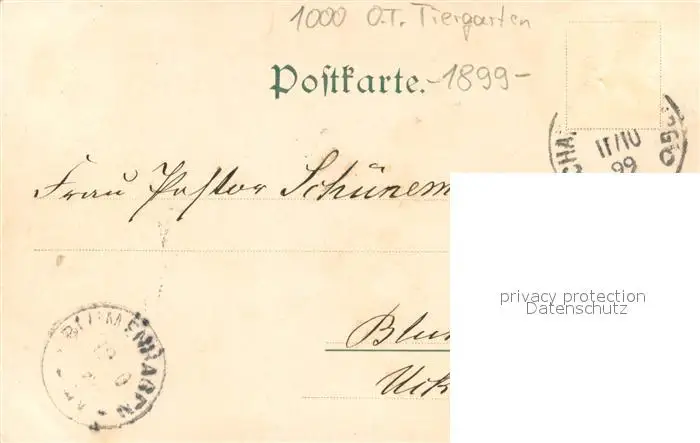 Tiergarten_Berlin Kaiser-Friedrich-Gedaechtniskirche im Tiergarten in Charlottenburg Tiergarten Berlin postalisch gelaufen 1899 Erhaltung siehe scans [LiesaD40] LiesID40