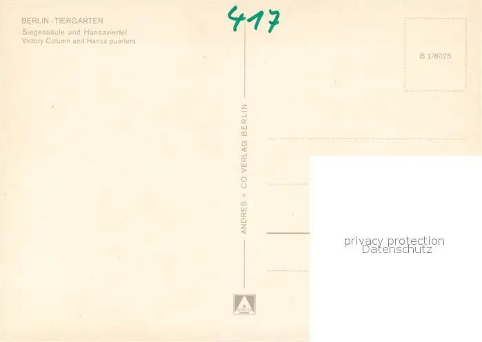 Tiergarten_Berlin Siegessaeule Hansaviertel Fliegeraufnahme Tiergarten Berlin postalisch nicht gelaufen nach 1965 Erhaltung siehe scans [FriedD77] Frierer