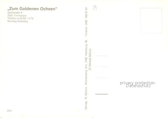 Timmaspe Gasthaus Zum Goldenen Ochsen Timmaspe postalisch nicht gelaufen nach 1965 Erhaltung siehe scans [PaolaD17] PaolPID1