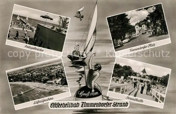 Timmendorfer_Strand Anlegebruecke Timmendorfer Platz Strandhalle Seebruecke Segelboot Luftaufnahme Timmendorfer_Strand postalisch gelaufen 1963 Erhaltung siehe scans [FriedD77] Frierer