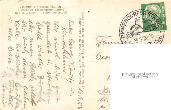 Timmendorfer_Strand Fliegeraufnahme Kurhotel Seeschloesschen Timmendorfer_Strand postalisch gelaufen 1956 Erhaltung siehe scans [KathaD81] Kathoren