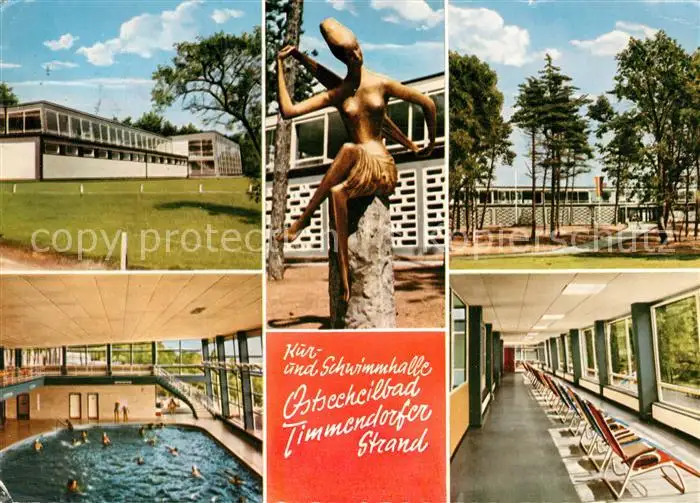 AK / Ansichtskarte Timmendorfer_Strand Kur und Schwimmhalle Skulptur Ostseeheilbad Timmendorfer_Strand