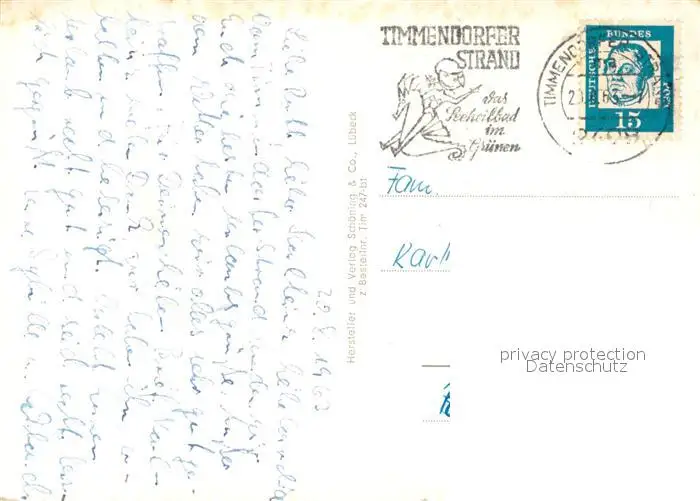 Timmendorfer_Strand Kur und Schwimmhalle Skulptur Ostseeheilbad Timmendorfer_Strand postalisch gelaufen 1963 Erhaltung siehe scans [FriedD77] Frierer