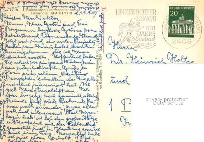 Timmendorfer_Strand Luxushotel Maritim Timmendorfer_Strand postalisch gelaufen 1969 Erhaltung siehe scans [NatalD47] NataID47
