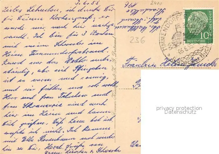 Timmendorfer_Strand Strand Ostseebad Timmendorfer_Strand postalisch gelaufen 1955 Erhaltung siehe scans [FriedD77] Frierer