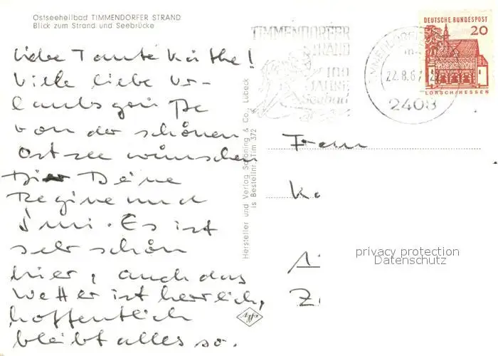 Timmendorfer_Strand Strand Seebruecke Ostseeheilbad Timmendorfer_Strand postalisch gelaufen 1967 Erhaltung siehe scans [FriedD77] Frierer