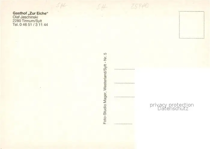 Tinnum Gasthof Zur Eiche Restaurant Nordseebad Tinnum postalisch nicht gelaufen nach 1965 Erhaltung siehe scans [FriedD77] Frierer