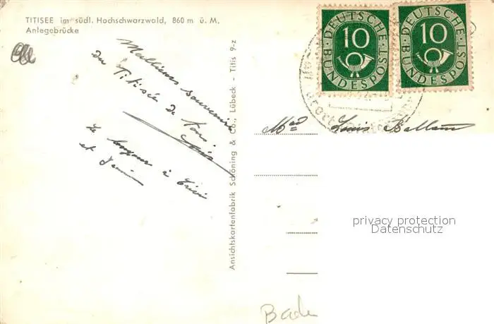Titisee Anlagebruecke Titisee postalisch gelaufen 1952 Erhaltung siehe scans [KathaD81] Kathoren