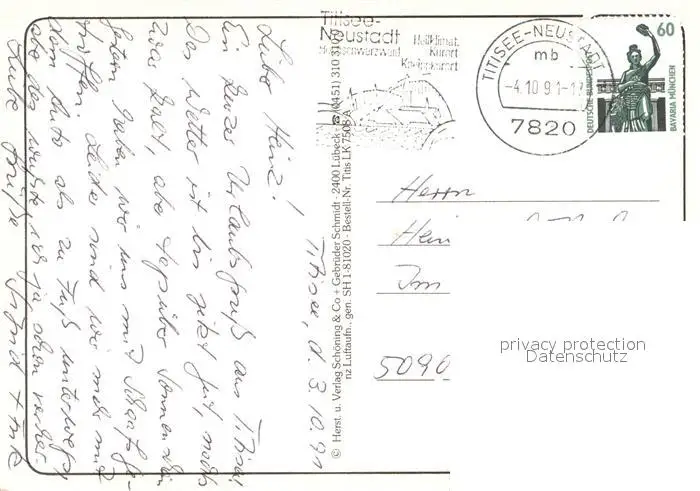 Titisee Blick auf Hochfirst Titisee Baerental Feldberg Hinterzarten Schwarzwald Fliegeraufnahme Titisee postalisch gelaufen 1991 Erhaltung siehe scans [FriedD77] Frierer