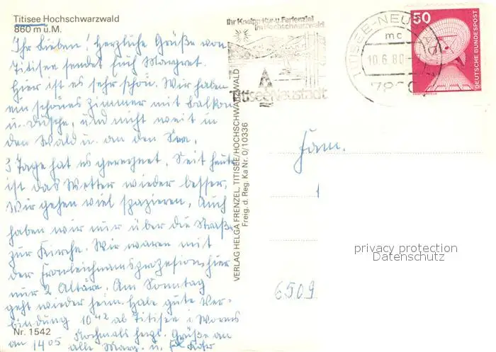 Titisee Fliegeraufnahme Titisee postalisch gelaufen 1980 Erhaltung siehe scans [LiesaD40] LiesID40