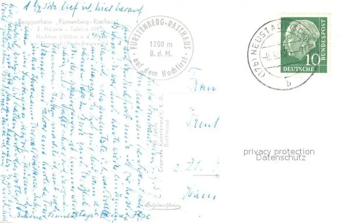 Titisee Hochfirst Fuerstenberg Rasthaus Blick zum Feldberg Schwarzwald Titisee postalisch gelaufen 1957 Erhaltung siehe scans [FriedD77] Frierer