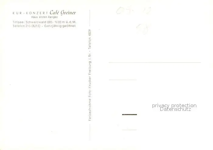 Titisee Kurkonzert Café Greiner im Schwarzwald Titisee postalisch nicht gelaufen nach 1965 Erhaltung siehe scans [FriedD77] Frierer