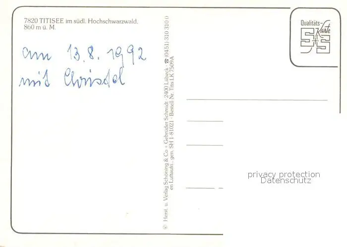 Titisee-Neustadt Fliegeraufnahme Seepartie Titisee-Neustadt postalisch nicht gelaufen 1992 Erhaltung siehe scans [LiesaD40] LiesID40