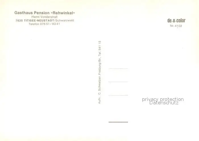 Titisee-Neustadt Gasthaus Pension Rehwinkel im Schwarzwald Gastraum Fremdenzimmer Titisee-Neustadt postalisch nicht gelaufen nach 1965 Erhaltung siehe scans [FriedD77] Frierer
