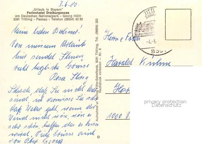 Tittling Ferienhotel Dreiburgensee Tittling postalisch gelaufen 1980 Erhaltung siehe scans [PaolaD17] PaolPID1