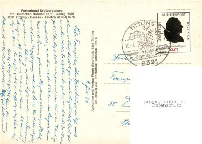 Tittling Ferienhotel Dreiburgensee Tittling postalisch gelaufen 1974 Erhaltung siehe scans [WerneD78] WernPID7