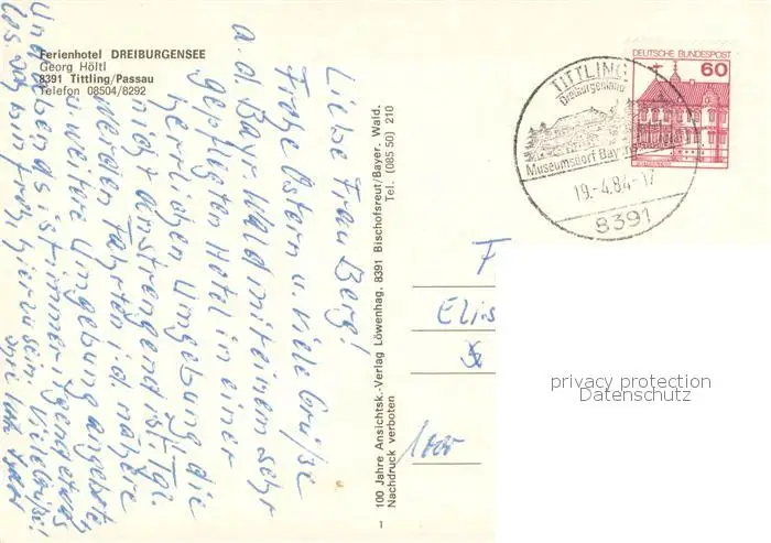 Tittling Ferienhotel Dreiburgensee Tittling postalisch gelaufen 1984 Erhaltung siehe scans [WerneD78] WernPID7