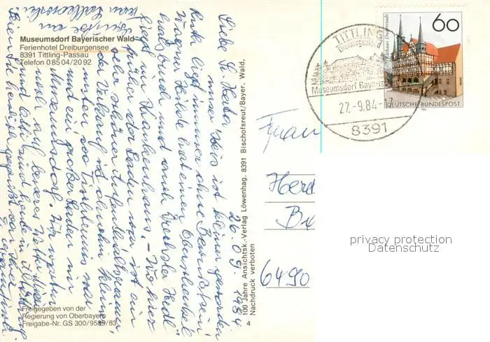 Tittling Museumsdorf Bayerischer Wald Ferienhotel Dreiburgensee Fliegeraufnahme Tittling postalisch gelaufen 1984 Erhaltung siehe scans [WerneD78] WernPID7