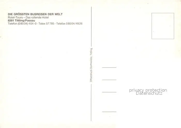 Tittling Rotel Tours Das rollende Hotel Tittling postalisch nicht gelaufen nach 1965 Erhaltung siehe scans [WerneD78] WernPID7