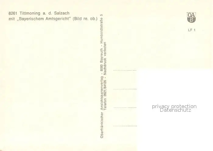 Tittmoning_Salzach Teilansichten Bayerisches Amtsgericht Wappen Tittmoning Salzach postalisch nicht gelaufen nach 1965 Erhaltung siehe scans [FriedD77] Frierer