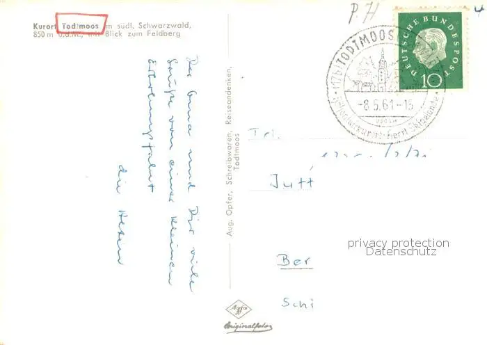 Todtmoos Fliegeraufnahme mit Feldberg Todtmoos postalisch gelaufen 1961 Erhaltung siehe scans [WerneD78] WernPID7
