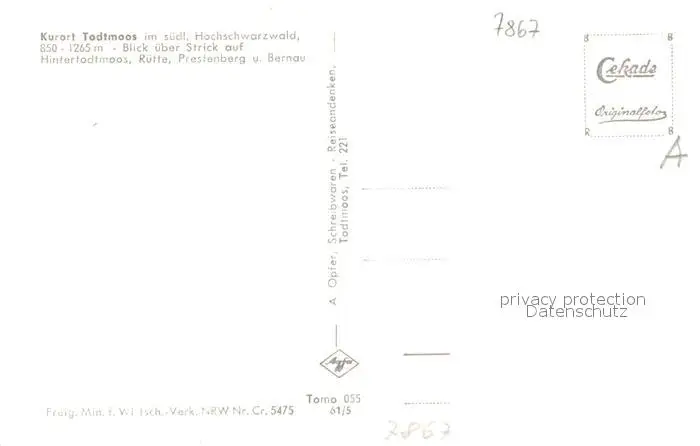 Todtmoos Fliegeraufnahme mit Strick Hinterstadtmoos Ruette Prestenberg und Bernau Todtmoos postalisch nicht gelaufen nach 1965 Erhaltung siehe scans [WerneD78] WernPID7