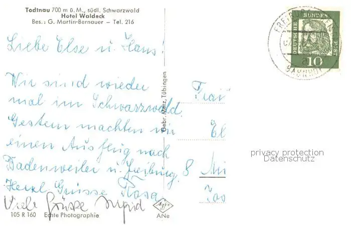 Todtnau Hotel Waldeck Gaststube Todtnau postalisch gelaufen 1962 Erhaltung siehe scans [WerneD78] WernPID7