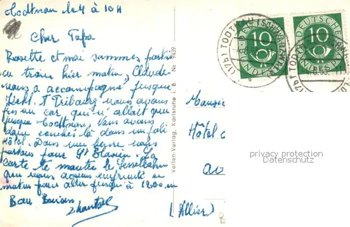 Todtnau Sessellift auf das Hasenhorn Todtnau postalisch gelaufen 1953 Erhaltung siehe scans [LiesaD40] LiesID40