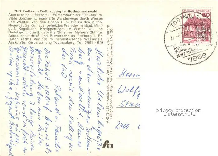Todtnauberg Luftkurort Wintersportplatz im Schwarzwald Fliegeraufnahme Todtnauberg postalisch gelaufen 1986 Erhaltung siehe scans [FriedD77] Frierer