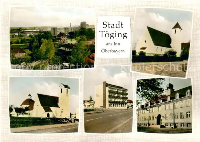 Toeging_Inn Kategorie Alte Ansichtskarten Postkarten bx93987 Toeging_Inn Panorama Kirchen Strassenpartie Rathaus Toeging_Inn postalisch gelaufen 1973 Erhaltung siehe scans [WerneD78]