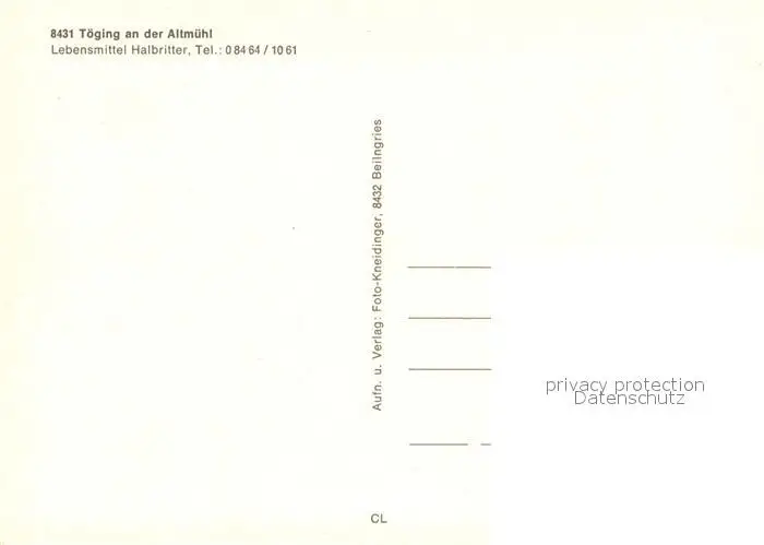 Toeging_Oberpfalz Fliegeraufnahme Toeging Oberpfalz postalisch nicht gelaufen nach 1965 Erhaltung siehe scans [WerneD78] WernPID7