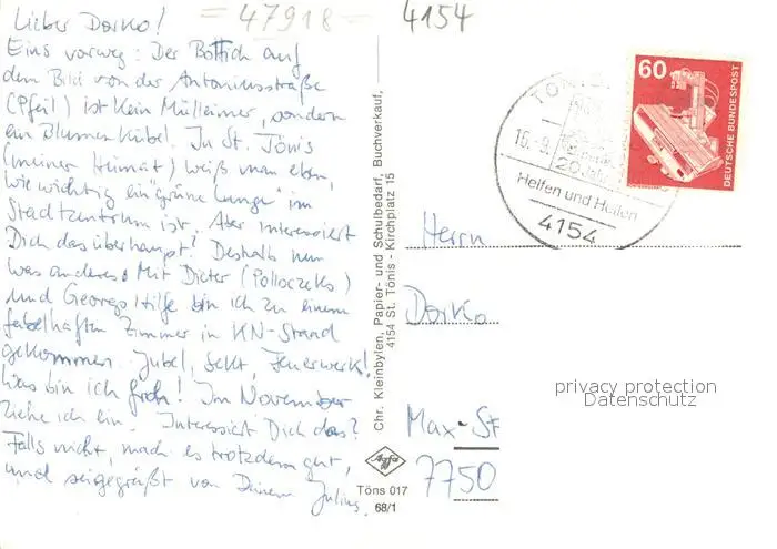 Toenis_St Kirchplatz Kirchenfeld Krankenhaus Antoniusstrasse Toenis_St postalisch gelaufen 1921-1965 Erhaltung siehe scans [LiesaD40] LiesID40