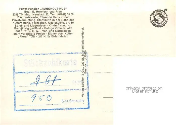 Toenning_Nordseebad Privat Pension Rungholt Hus Zimmer Garten Toenning_Nordseebad postalisch nicht gelaufen nach 1965 Erhaltung siehe scans [WerneD78] WernPID7