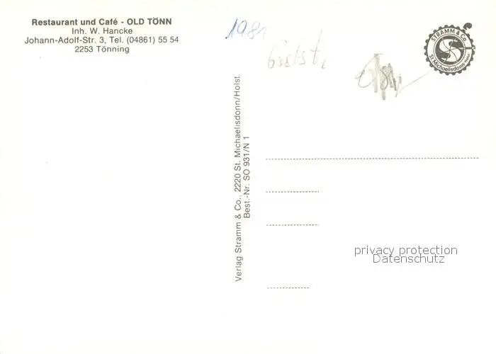 Toenning_Nordseebad Restaurant Cafe Old Toenn Gastraeume Theke Toenning_Nordseebad postalisch nicht gelaufen nach 1965 Erhaltung siehe scans [WerneD78] WernPID7