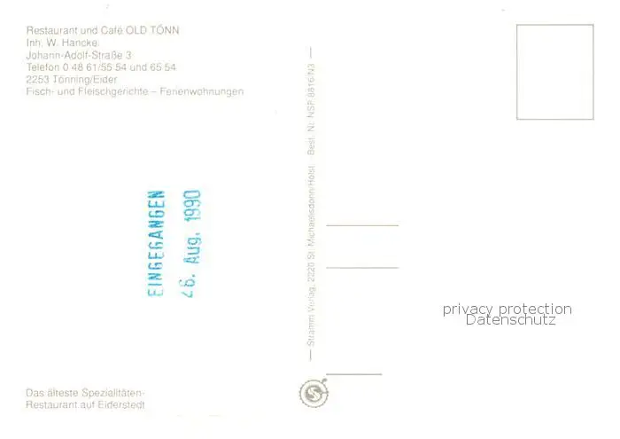 Toenning_Nordseebad Restaurant und Cafe Old Toenn Gastraeume Theke Toenning_Nordseebad postalisch nicht gelaufen nach 1965 Erhaltung siehe scans [FriedD77] Frierer