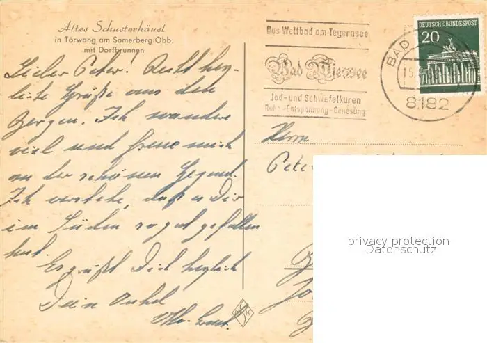 Toerwang Altes Schusterhaeusl mit Dorfbrunnen Toerwang postalisch gelaufen nach 1965 Erhaltung siehe scans [WerneD78] WernPID7