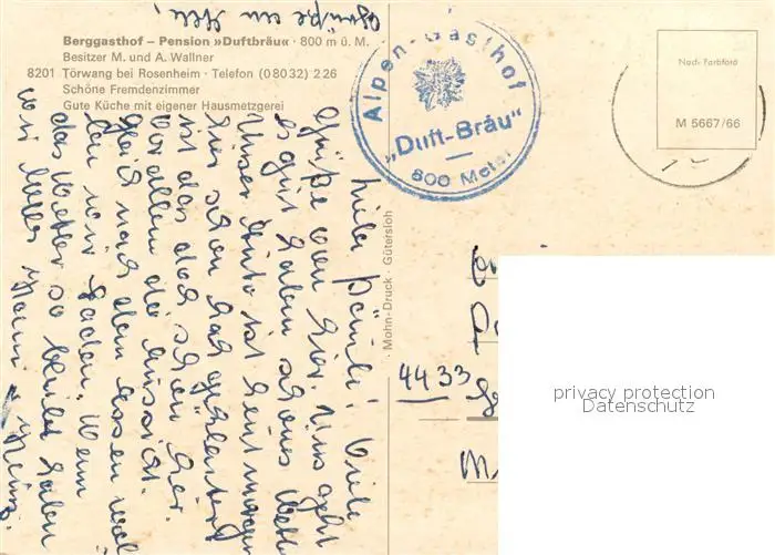 Toerwang Berggasthof Pension Duftbraeu Gastraum Terrasse Toerwang postalisch gelaufen 1966 Erhaltung siehe scans [FriedD77] Frierer