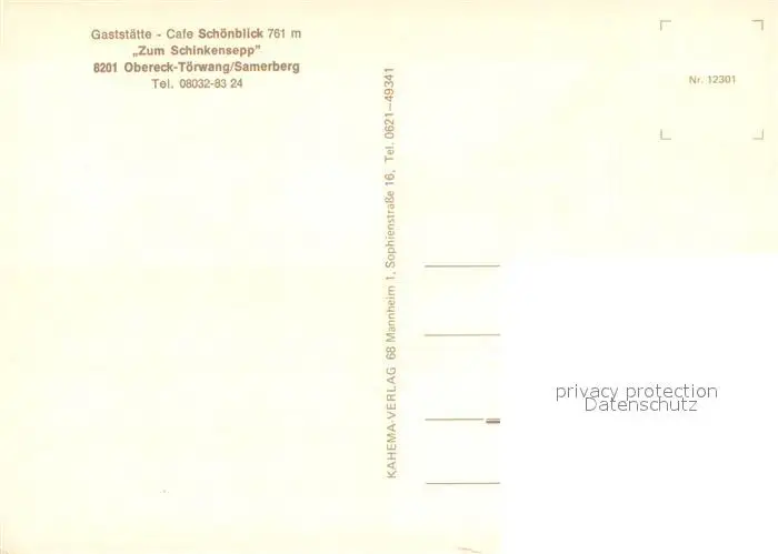 Toerwang Gaststaette Cafe Schoenblick Zum Schinkensepp Gaststube Terrasse Toerwang postalisch nicht gelaufen nach 1965 Erhaltung siehe scans [WerneD78] WernPID7