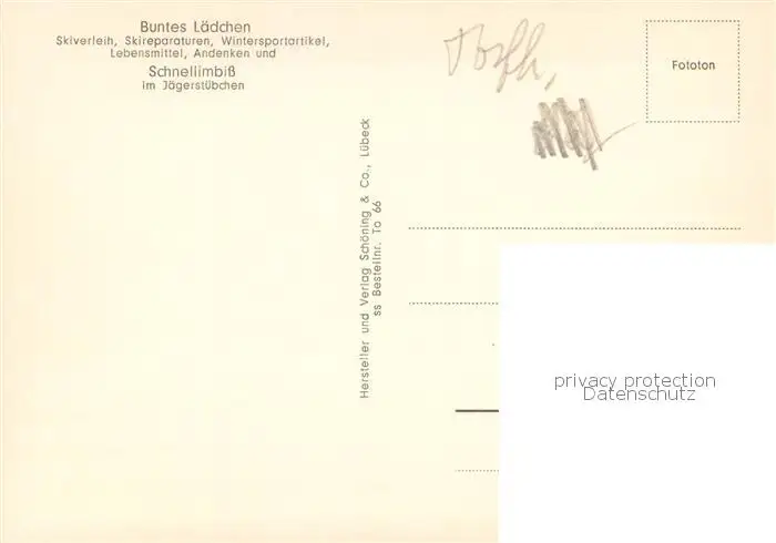 Torfhaus_Harz Buntes Laedchen Schnellimbiss im Jaegerstuebchen Torfhaus Harz Erhaltung siehe scans [FriedD77] Frierer