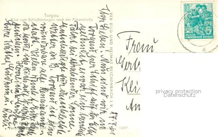 Torgau Blick vom Schlosstorbogen zur Ritterstrasse Torgau postalisch gelaufen 1961 Erhaltung siehe scans [WerneD78] WernPID7