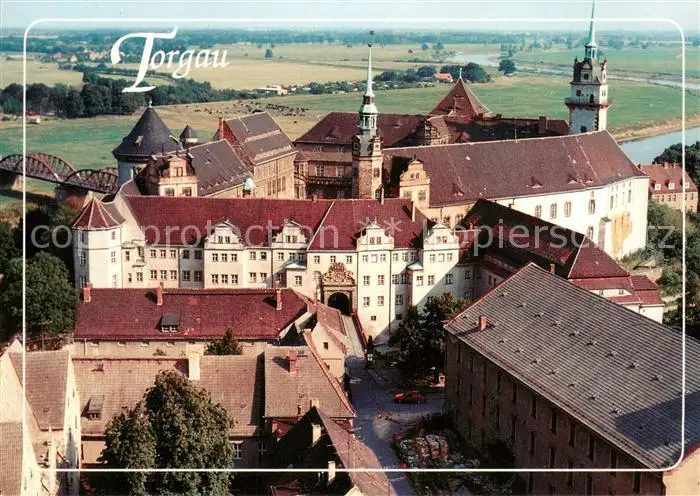 AK / Ansichtskarte Torgau Blick von Stadtkirche St. Marien Elbaue Schloss Hartenfels Torgau