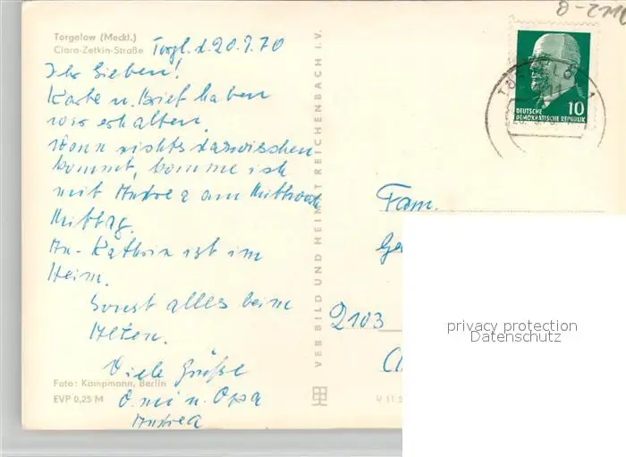 Torgelow Clara Zetkin Strasse Torgelow postalisch gelaufen 1970 Erhaltung siehe scans [LiesaD40] LiesID40
