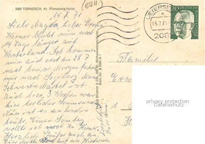 Tornesch Kirche Schule Park Hochhaeuser Tornesch postalisch gelaufen 1971 Erhaltung siehe scans [WerneD78] WernPID7