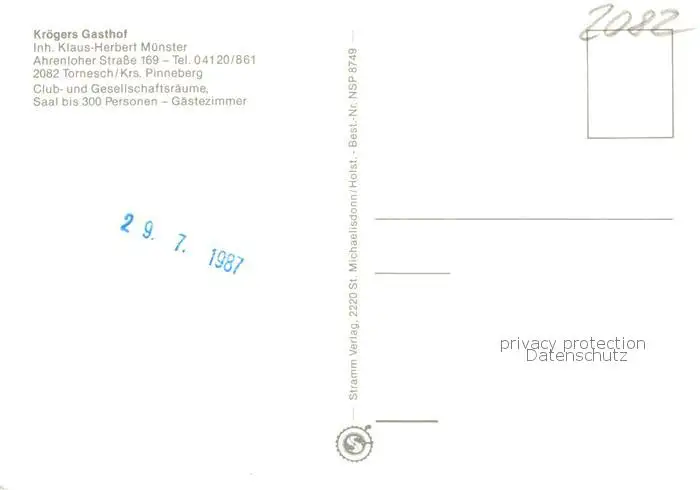 Tornesch Kroegers Gasthaus Ahrenlohe Tornesch postalisch nicht gelaufen 1987 Erhaltung siehe scans [LiesaD40] LiesID40