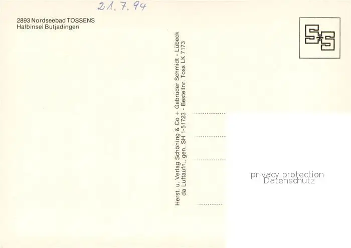Tossens_Nordseebad Fliegeraufnahme Tossens_Nordseebad postalisch nicht gelaufen 1994 Erhaltung siehe scans [WerneD78] WernPID7