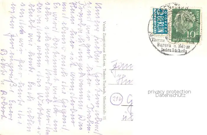 Traben-Trarbach Gesamtansicht im Moseltal Traben-Trarbach postalisch gelaufen 1954 Erhaltung siehe scans [LiesaD40] LiesID40