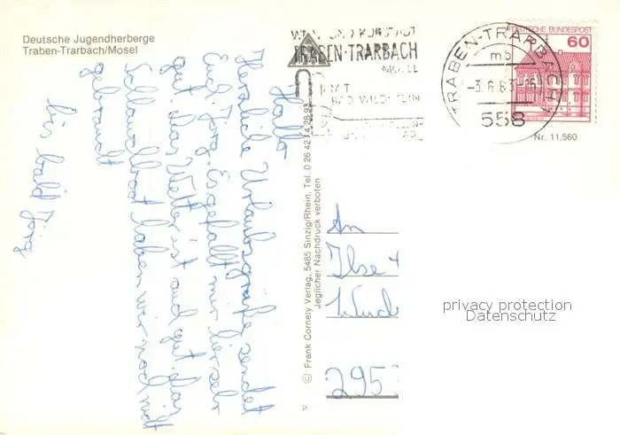 Traben-Trarbach Jugendherberge Traben-Trarbach postalisch gelaufen 1983 Erhaltung siehe scans [FriedD77] Frierer